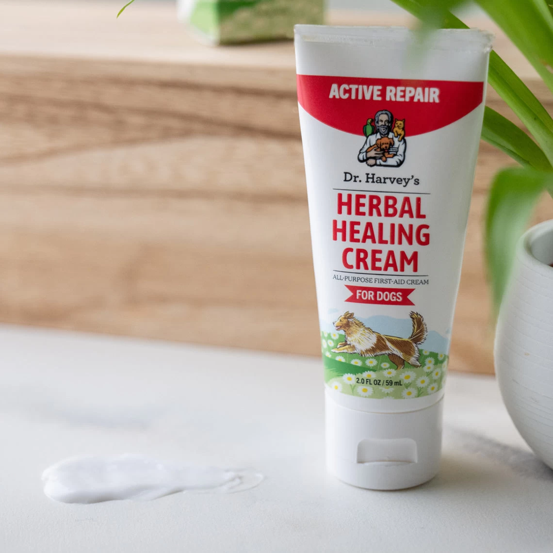 Dr. Harvey’s Healing Cream first aid ointment contains only the finest natural ingredients known to promote healing. This soothing blend supports healing of your dog’s nose, skin and paw pads. The all-purpose cream goes on gently and brings immediate relief.