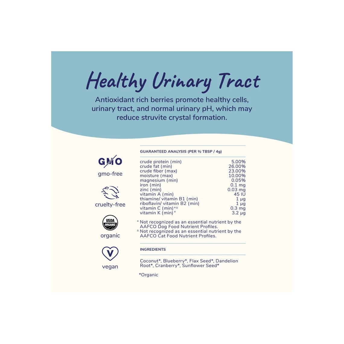 This berry healthy formula packs in the power of cranberries and blueberries with other vitamin and mineral rich whole foods to support cellular function and urinary tract health. This tasty supplement is grain-free and has no artificial ingredients. It is veterinarian formulated and tested to ensure safety and efficacy.
