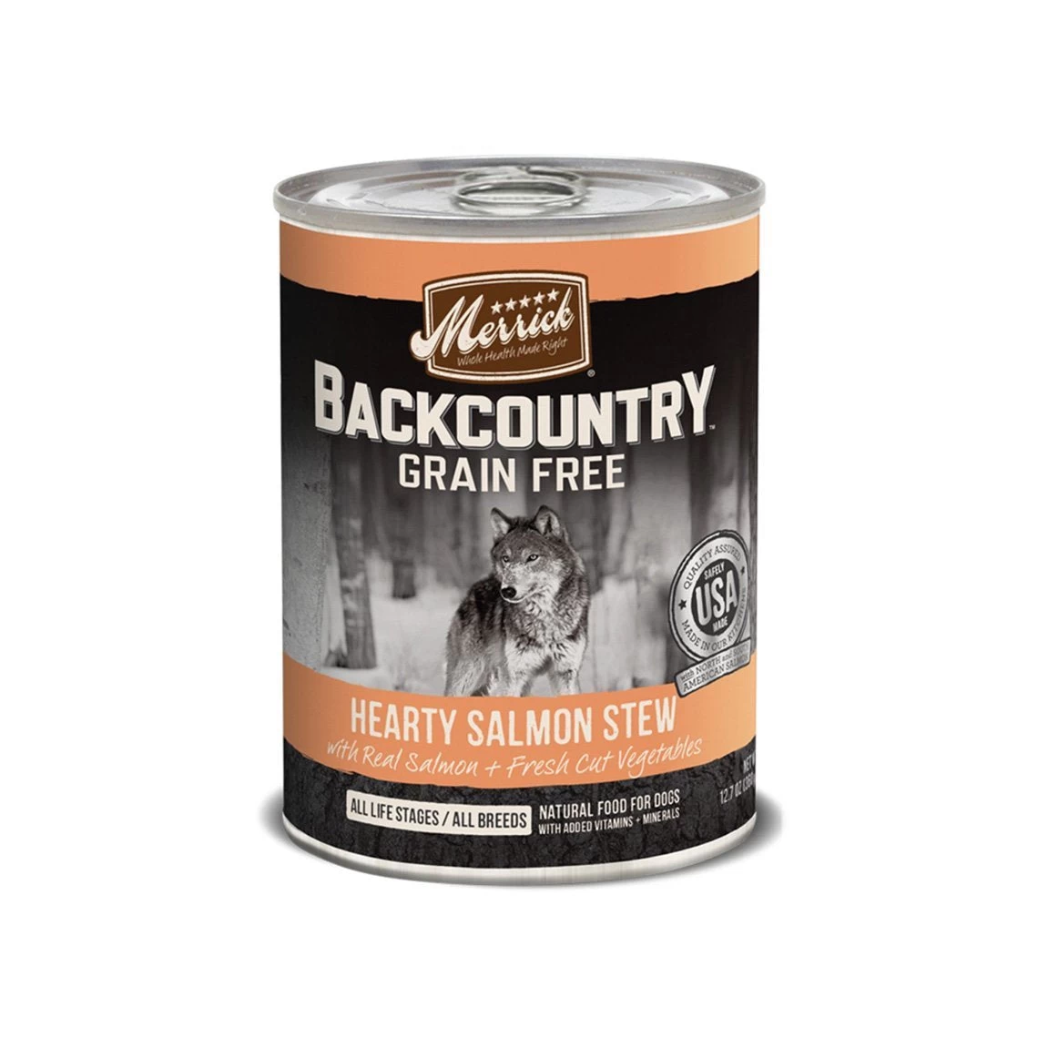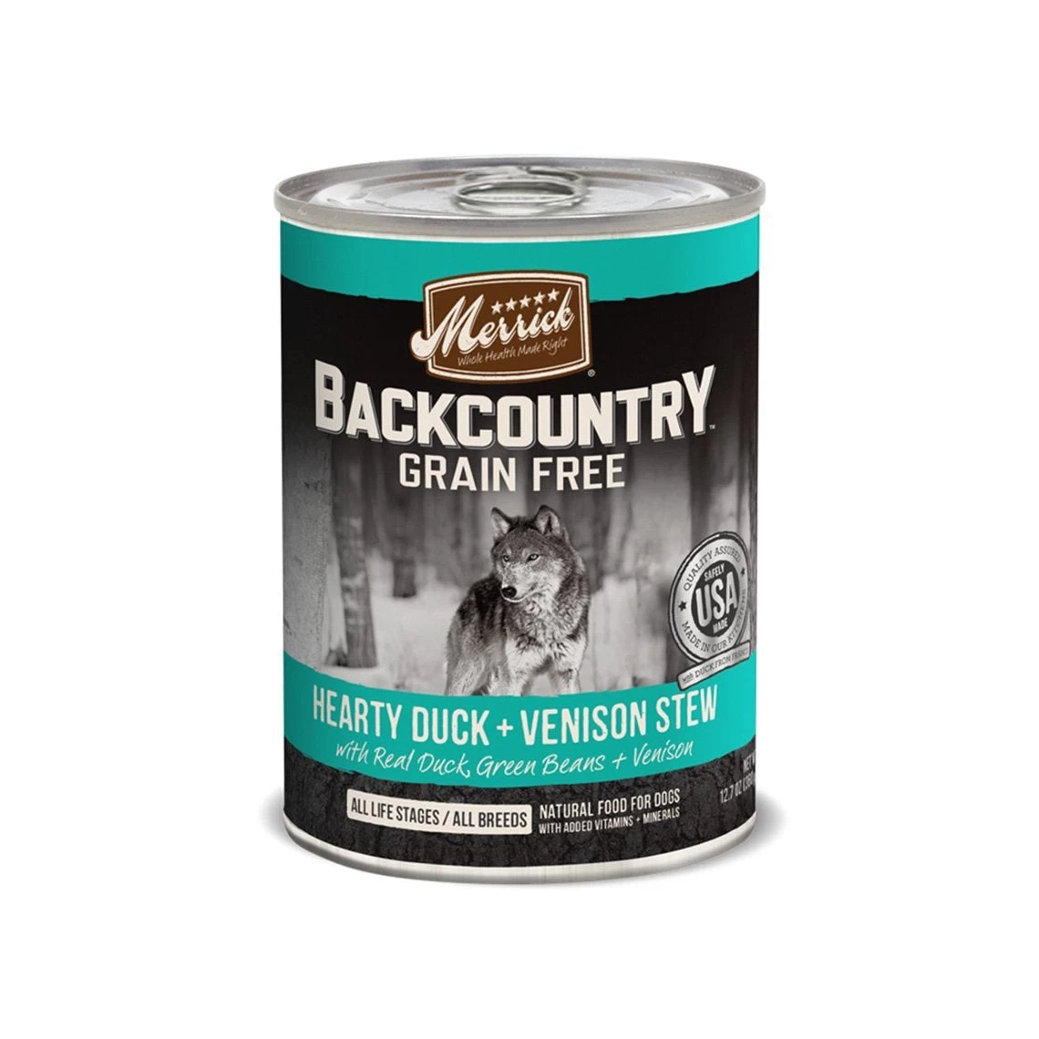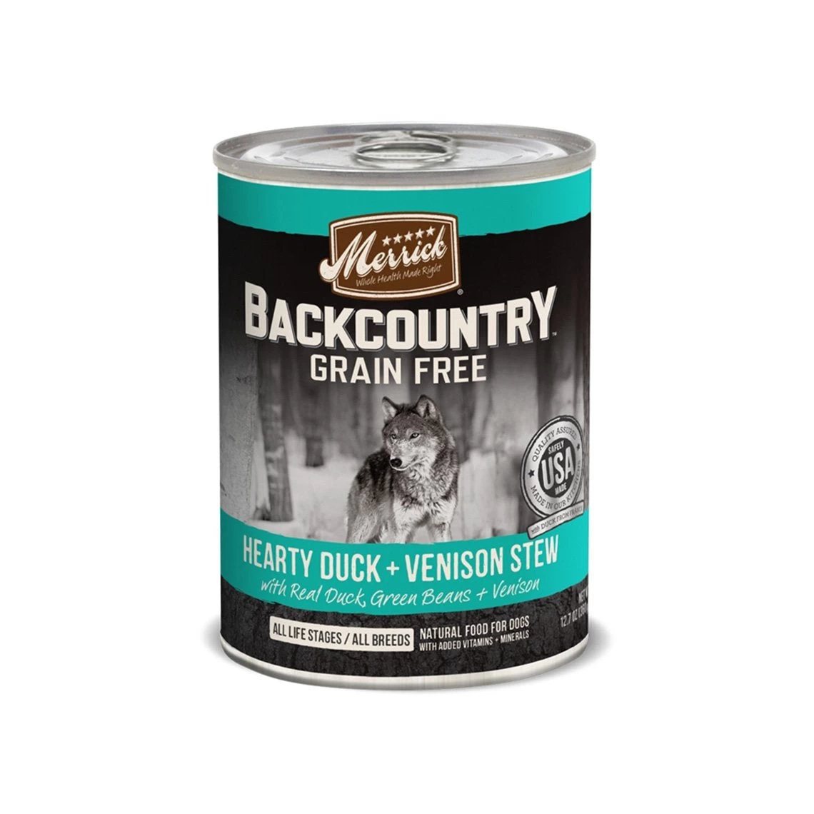 Merrick Backcountry 96% Real Meat Canned Dog Food is specially formulated to celebrate the high protein, grain-free diets of modern dog’s ancestors.