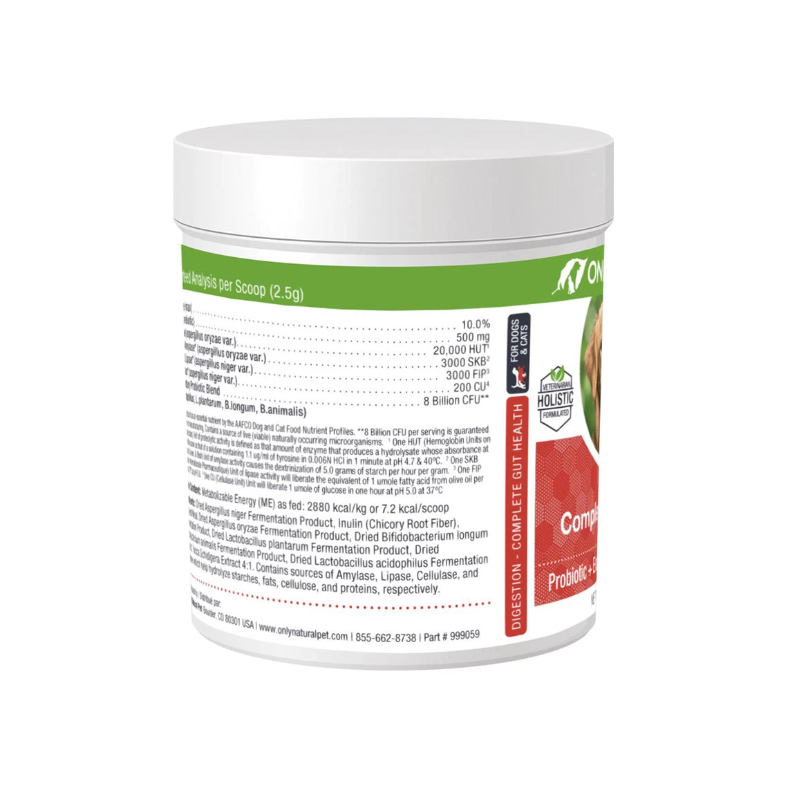 Supercharge your pet’s gastrointestinal tract with the three pronged, effective blend of Only Natural Pet Complete Gut Health. Combining a unique, stable complex of digestive enzymes, probiotics and prebiotics, Only Natural Pet Complete Gut Health is an easy to administer powder that works three fold to support healthy digestion, boost the immune system and aid in nutrient absorption.
