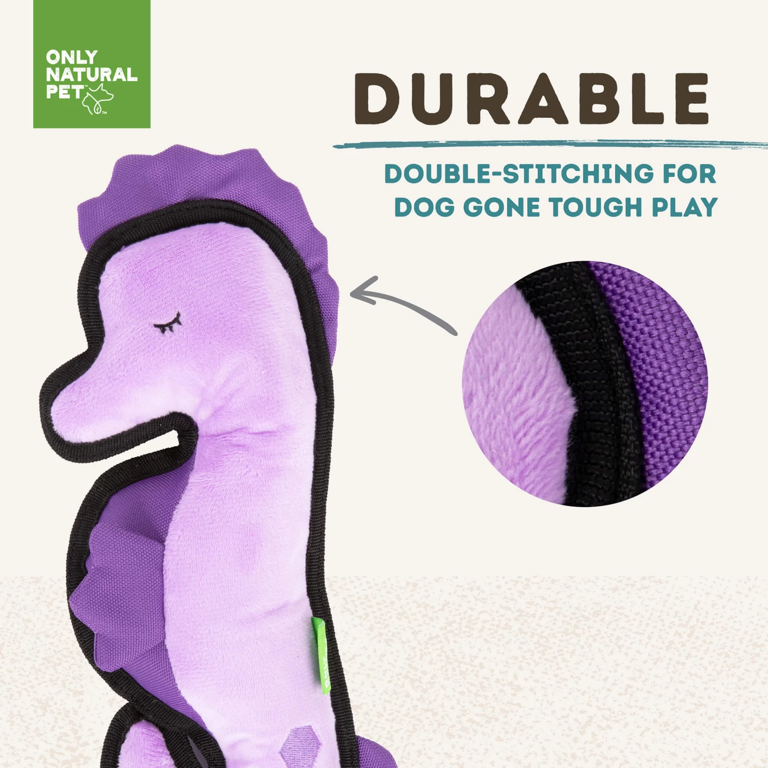 Only Natural Pet Sea Creatures Recycled Plush Dog Toys are charming plush toys that are tough enough to stand up to all of life’s adventures. From the deepest depths of the ocean, these ultra-durable dog toys have surfaced for a boatload of fun. Each Sea Creature has its own unique personality and multiple play features, like rope pulls, crinkle, and squeakers, to keep tails wagging and good times rolling.